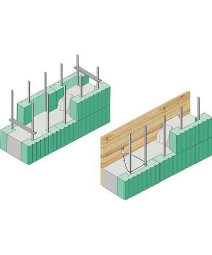 15.3 Для случая, когда блоки устанавливаются без перевязки и профили проходят по их центру, следует на концах четырех соседних блоков (две пары блоков в смежных вертикальных рядах) устанавливать (вставлять) через 800 мм по горизонтали связующий элемент - отрезок профиля длиной 100 мм. Это позволит зафиксировать каждый блок в двух точках – по центру и на одном из его концов.